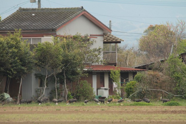 他のナベヅルは、民家裏にぎっしり。