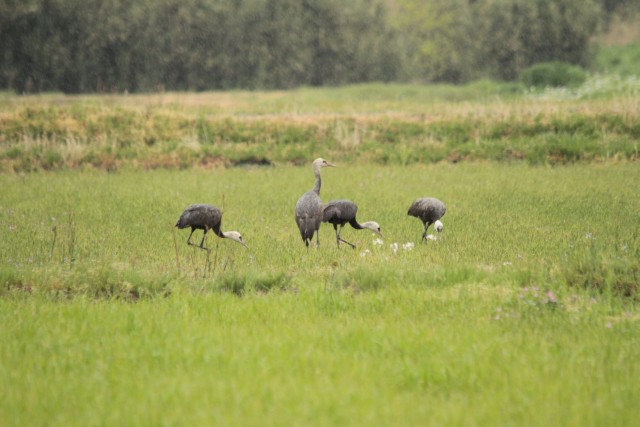 下水流に行ってみると、ナベヅル幼鳥4羽。