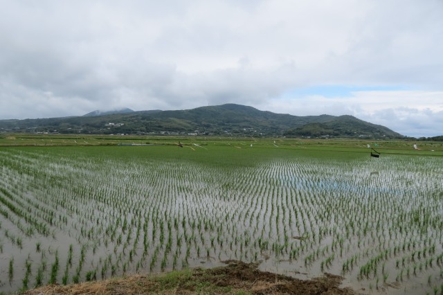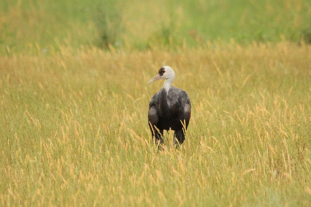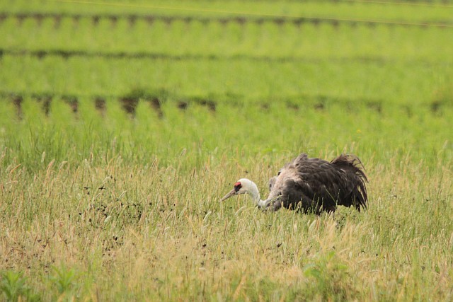 その1枚奥の田んぼに、ナベヅル成鳥1羽。