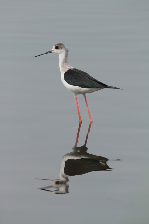 東干拓の貯水池でセイタカシギ2羽。