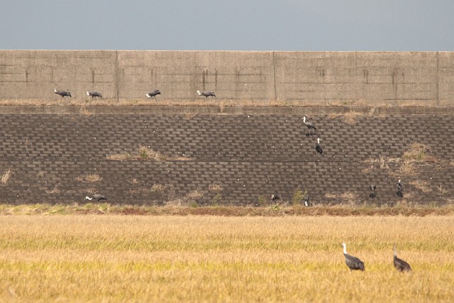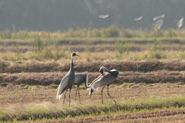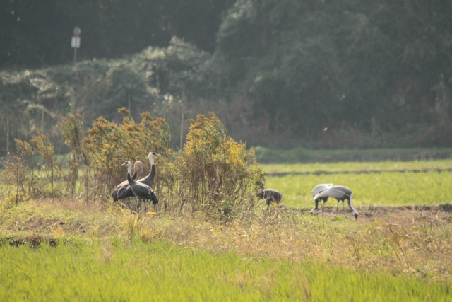 10/28、ナベヅルが洛東江(ナクトンガン)欧米年評湿地上空を回って近隣の善山邑(ソンサンウプ)甘泉(カムチョン)下流砂浜に降りた。 こちらには二日前にも11匹が訪ねてきた。ナベヅルが年評湿地の代わりに甘泉(カムチョン)に降りたのは、今年が初めてだ。