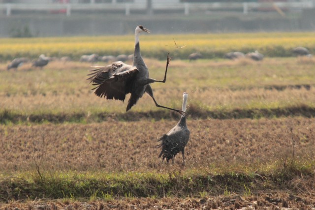 鉄原平野に冬の渡り鳥、鶴が訪ねてきました。 先発隊で到着したのはマナヅルです。 真鶴は遠くロシア、アムール川流域湿地、自然保護区などの地で繁殖して毎年我が国鉄原(チョルウォン)平野、漣川(ヨンチョン)、臨津江(イムジンガン)、漢江(ハンガン)河口金浦(キンポ)野原などの地に飛んできます。
