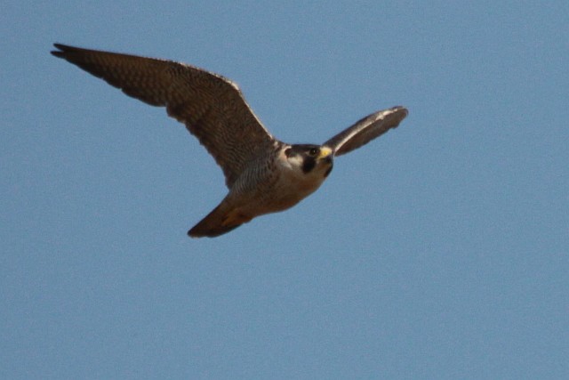 カモ狙いなのか、東干拓出飛び回るハヤブサ