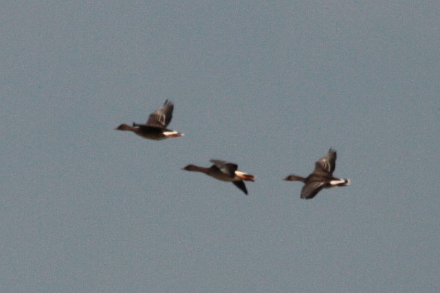 アカツクシガモを待っていたら、午前中にマガン?ヒシクイ?3羽