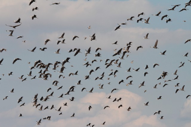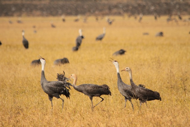 飛び回るツルたち。