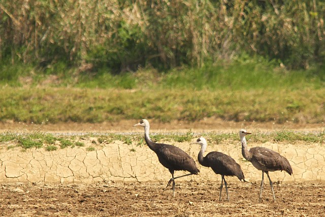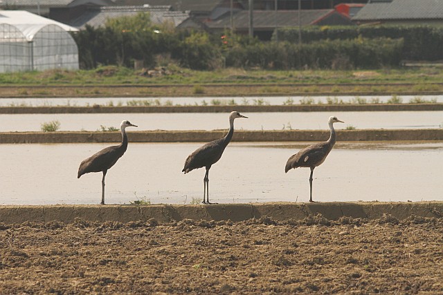 ぐるぐる荒崎近郊探し回りましたが、ナベヅル幼鳥3羽しか見当たりません