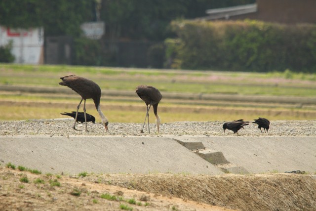のんびりエサを食べたり、農作業の車に追われたりの一日のようです