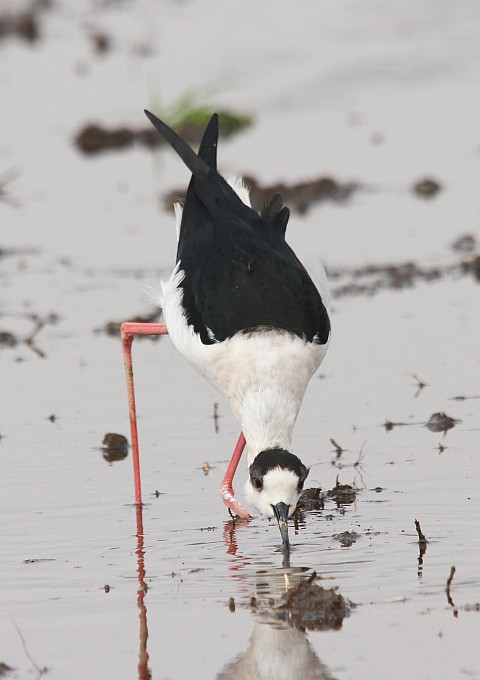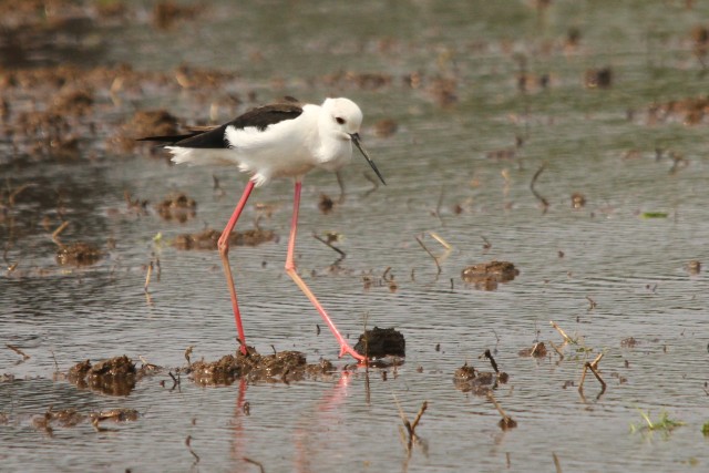 田植えが始まった西干拓では、セイタカシギが40羽程いました