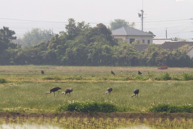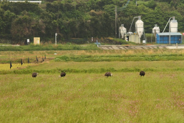 とうとう石碑裏の田んぼに移動してきた4羽