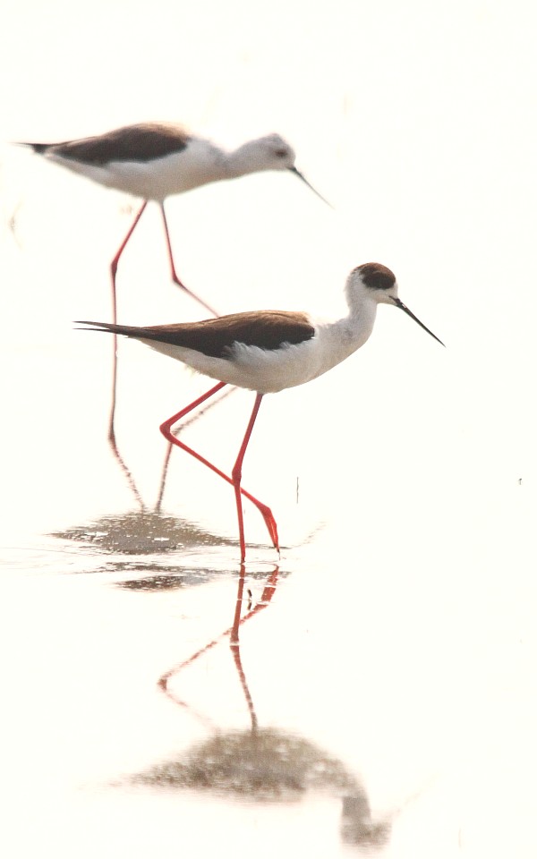 セイタカシギとアオアシシギ、コアオアシシギが長い足でうろうろ