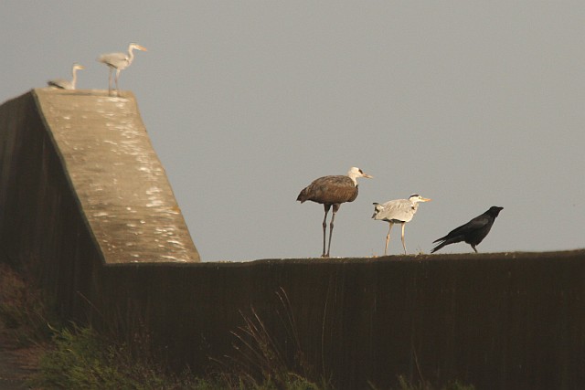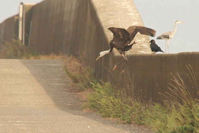 風上に頭を向けて、アオサギやカラスと共にうろうろしてます