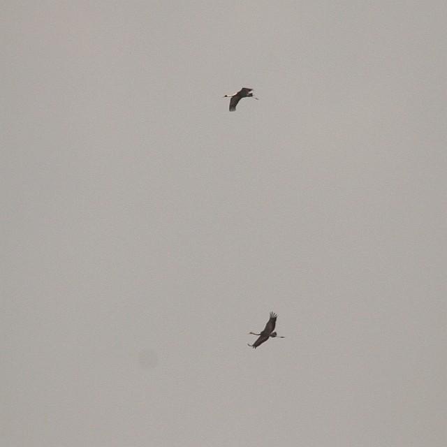 そして先に飛んでいたナベヅルの群れを追いつつも追いつかず、離れて蕨島の東側付近で旋回、高度を上げて雲の中に見えなくなった