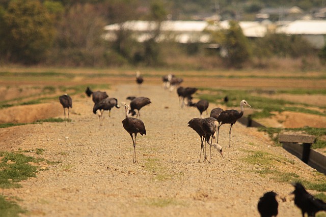 ツルをちょっと観察して数え始めた9:25ごろからセンター西側の道路に居たツルが、ぱらぱらと13羽飛び始め