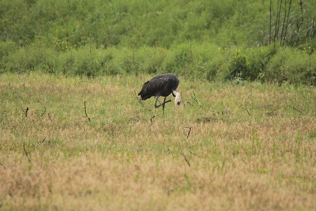 荒崎からずいぶん離れた場所のナベヅル幼鳥は、採餌したり羽づくろいのようなことをしたり