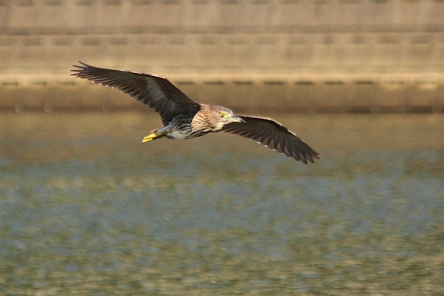 ゴイサギ幼鳥、江内川を飛び回ってます