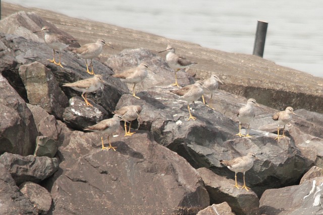 今日も蛇淵川河口にキアシシギとソリハシシギの混群