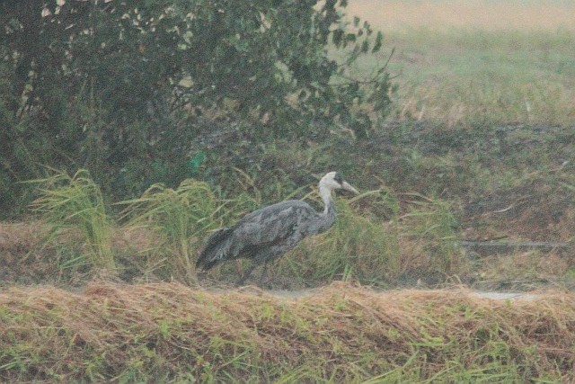朝、台風で雨風強いときの居残りナベヅル