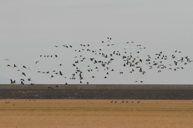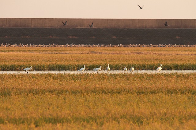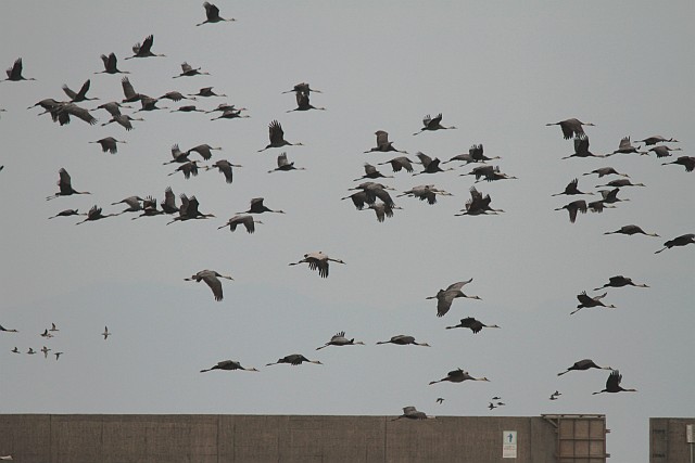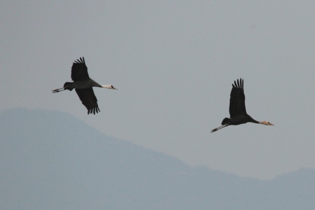 東干拓上空を飛ぶツルたちが見える場所なんだけど、仲間が居残りと一緒に降りてるところを私は見ていない