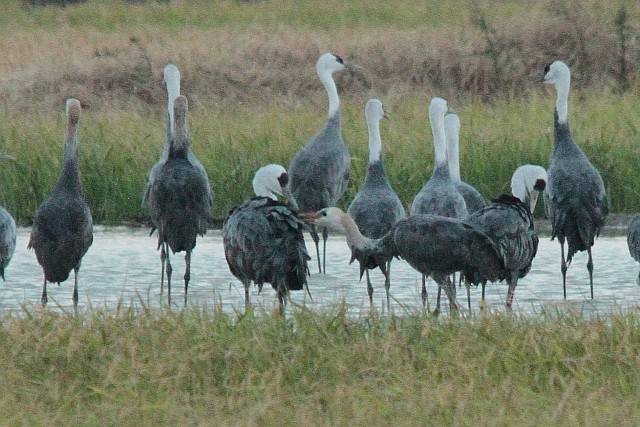 お昼のマナヅルは、ねぐらで水を飲んだりしてくつろいでました