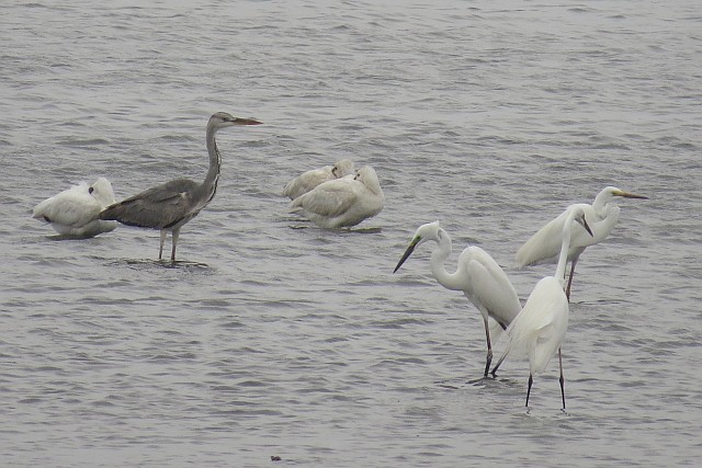 蛇淵河口にヘラサギ2クロツラヘラサギ1