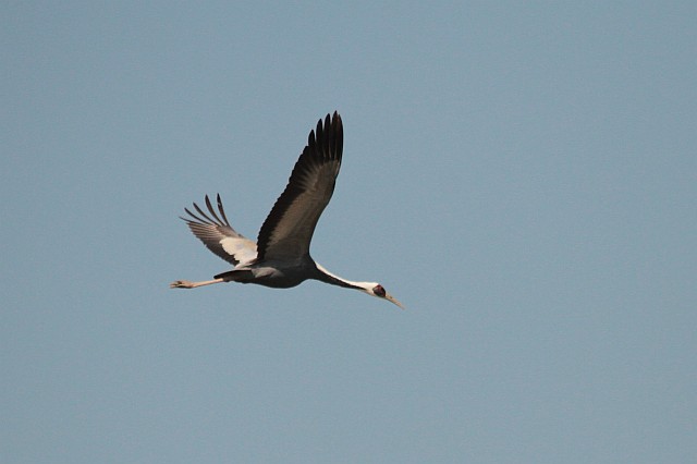 そして警戒して群れが飛び始めたとき、われ先に飛んでいるのがこのマナヅル