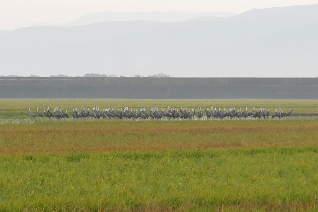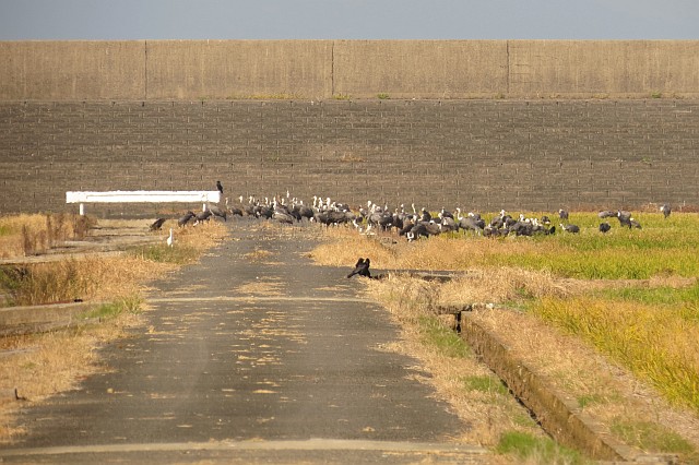 ほとんどのツルは、東干拓保護区内のずーっと奥の堤防際で過ごしてました