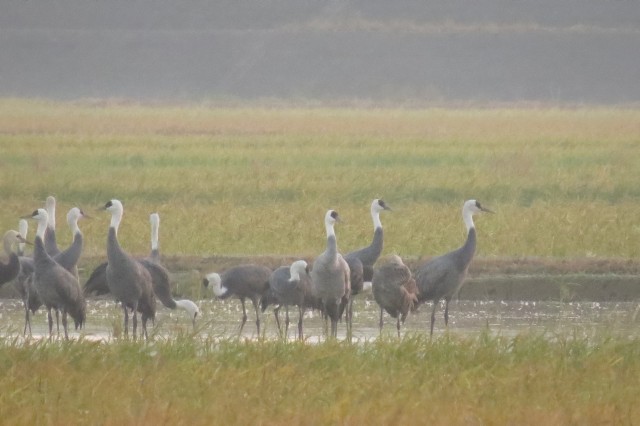 見てる間、ほとんどのツルが東干拓のねぐらに戻っては来てるみたいだけど・・・
