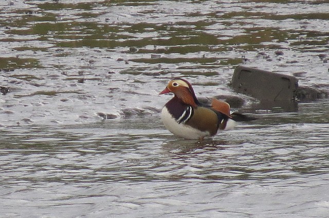蛇渕河口遠くにオシドリ1羽